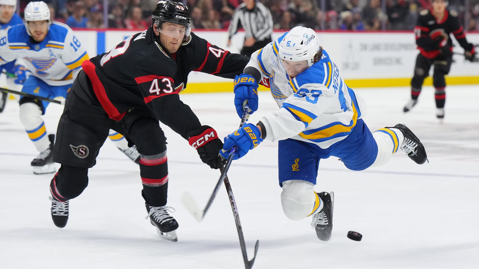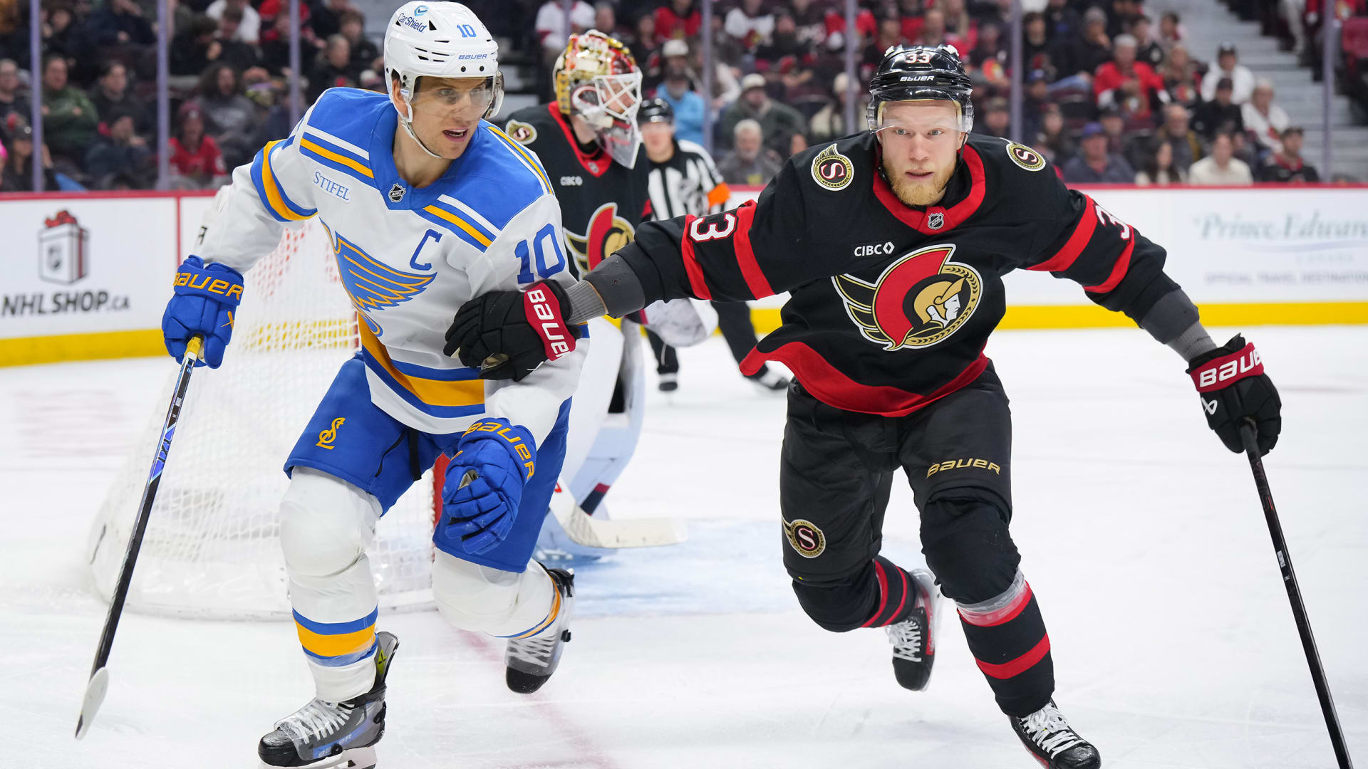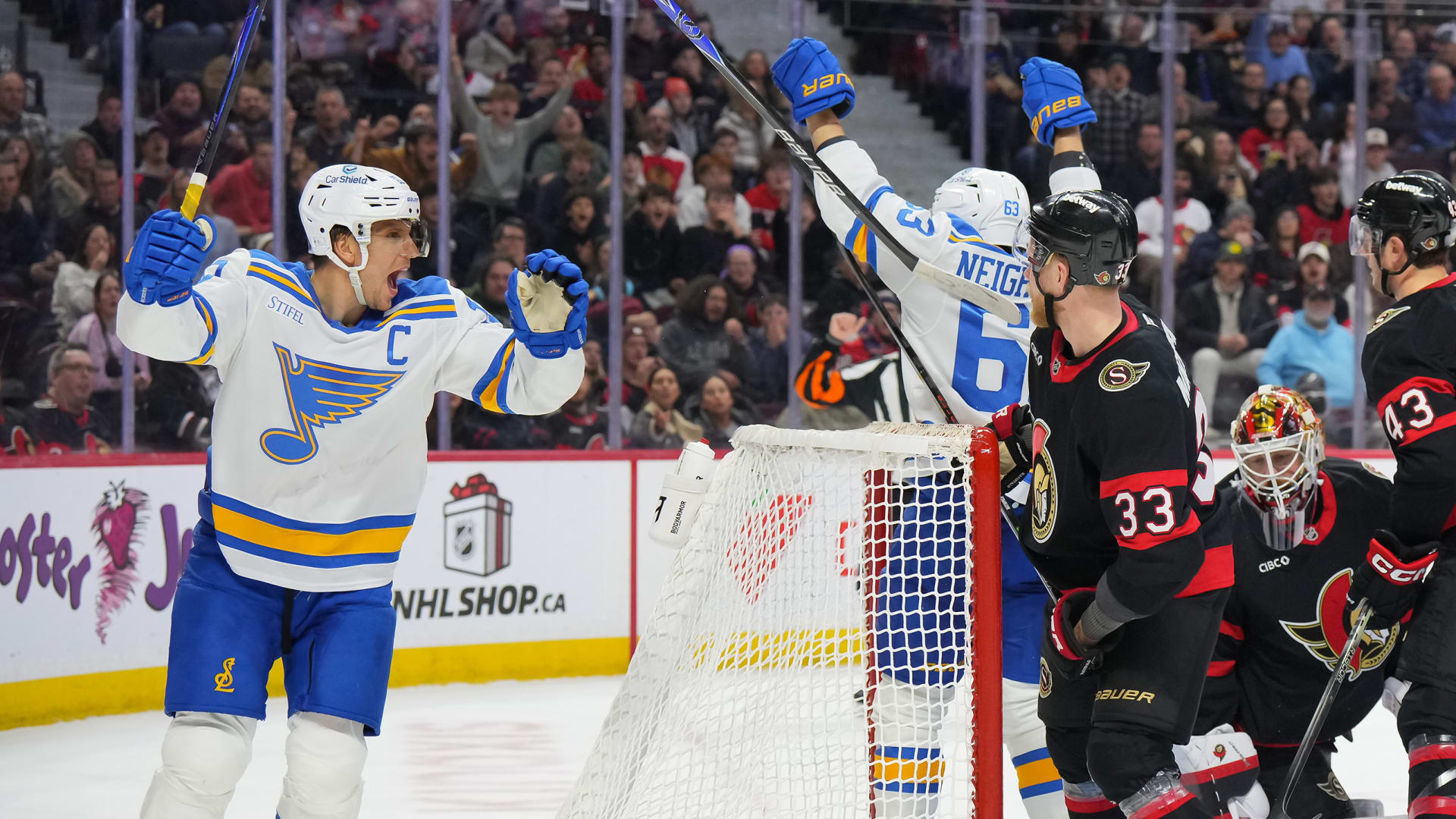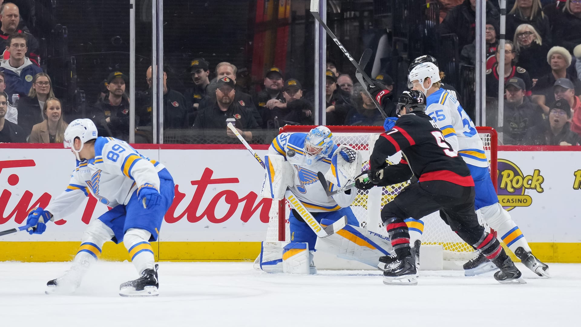 The St. Louis Blues beat the Ottawa Senators 2-1 at Canadian Tire Centre on Dec. 6, 2025. (Photos: Getty Images)