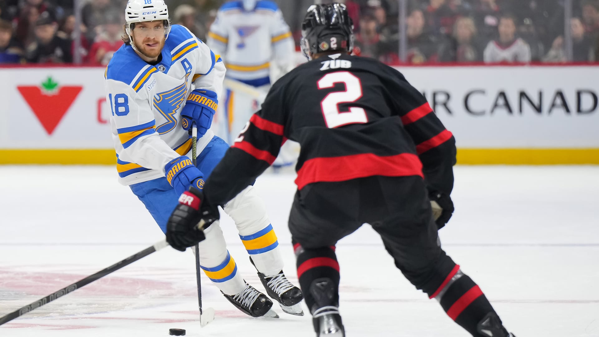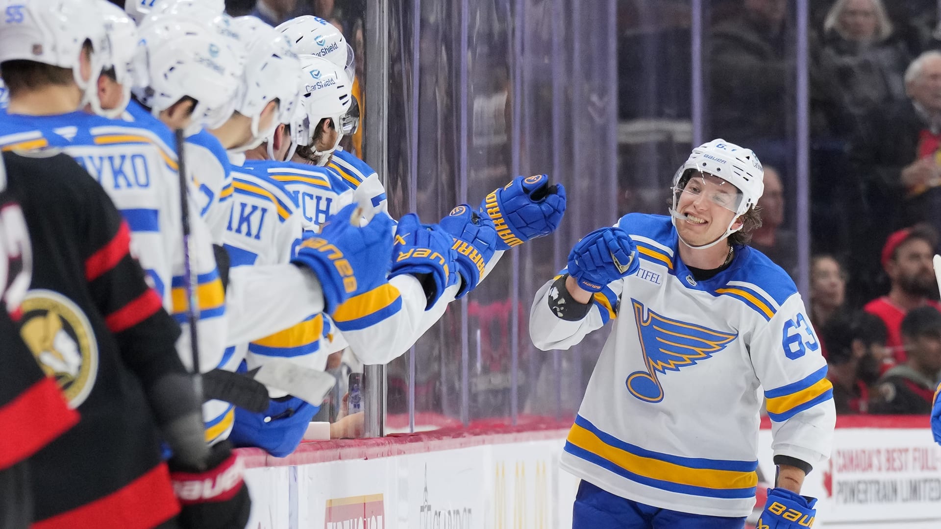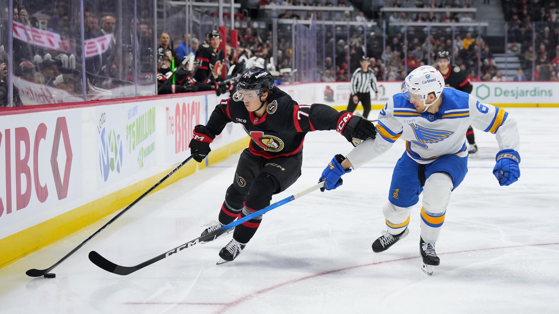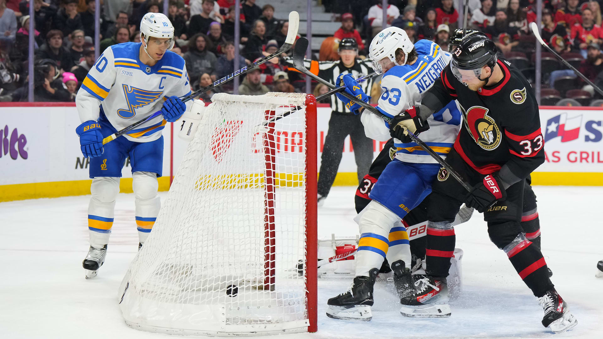 The St. Louis Blues beat the Ottawa Senators 2-1 at Canadian Tire Centre on Dec. 6, 2025. (Photos: Getty Images)