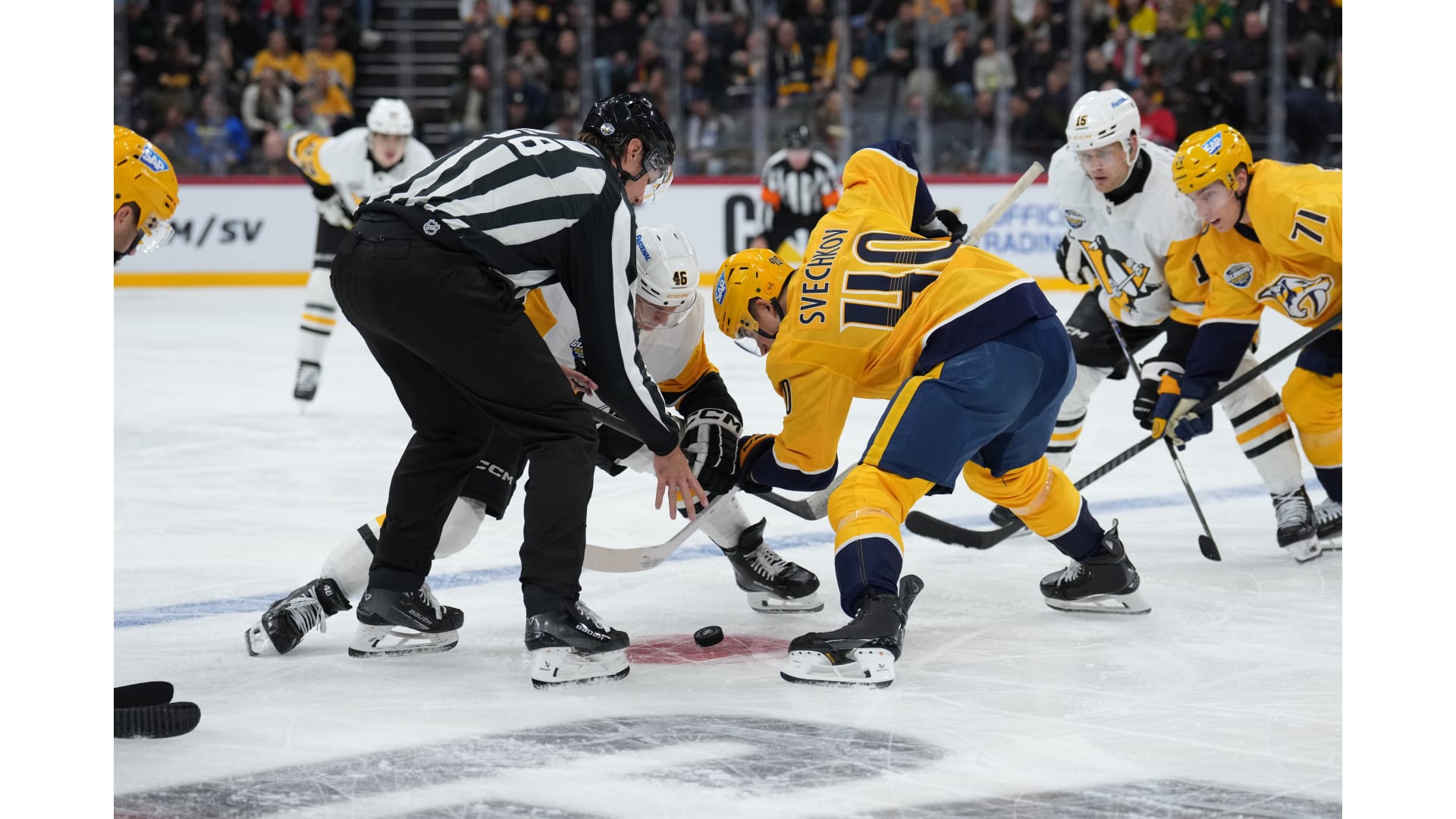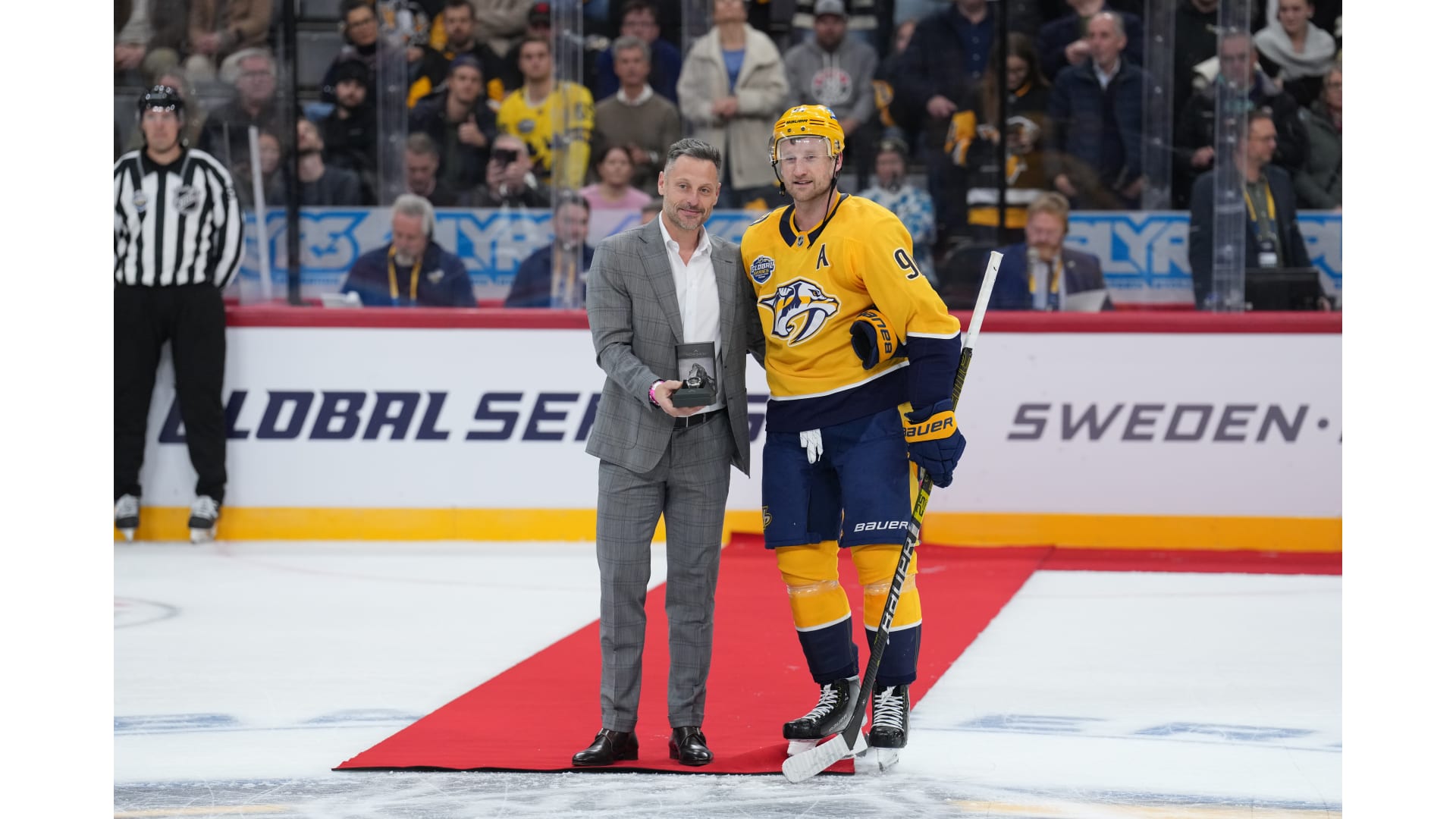 Photos from the Nashville Predators game against the Pittsburgh Penguins in the NHL Global Series presented by Fastenal, Avicii Arena, Friday, Nov. 14, 2025, in Stockholm, Sweden (Photo/John Russell).