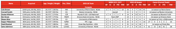 2025-26 Devils Prospect Stats